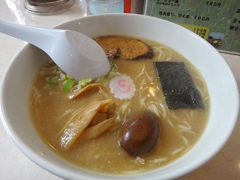 めじろといえば多量に浮かんだ正方形に切られた白ネギ。なのに、主役交代と言わんばかりに青ネギが目立っていた。他にはチャーシュー、メンマ。