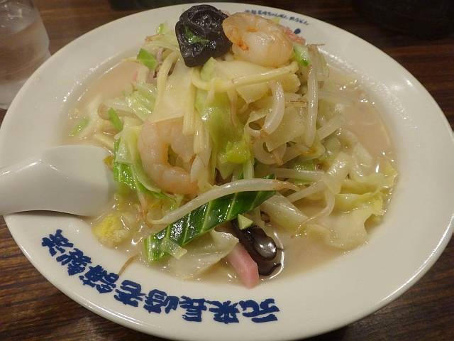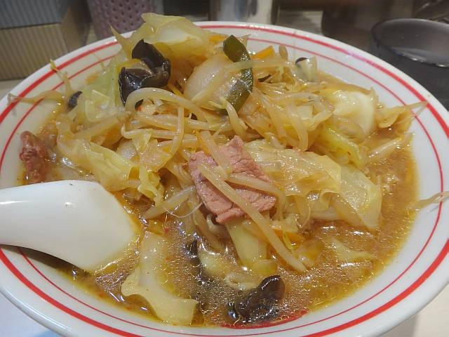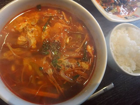 そして最後はユッケジャン(980円)。モヤシ・ニラ・ネギ・ゼンマイ・ニンジン・ユッケ・溶き卵が、牛骨ベースのスープ、ライスと組み合わせられる。辛さとコクとが揃って出迎えてくれた。具の味も申し分なく、しっかりと食べ切る事が出来た。
