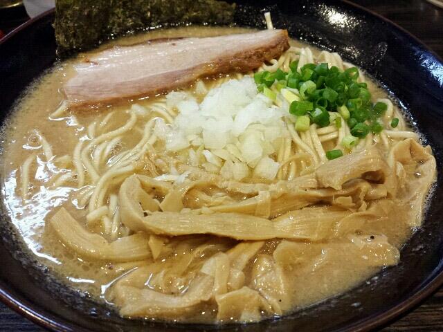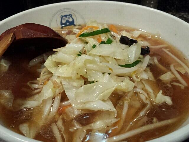 手早く撮影した後、麺を手繰る。太い!双六@戸田市より太く、ほうきぼし@王子神谷よりは細いかなと思った。もっちりとしており、噛み締めると甘みがどかっと味覚に乗っかってきた。余りにも強く、これは麺だけではないと思っていたら、絡まっていたスープも甘めの味付けだった。