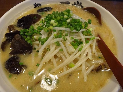具は、ブロックチャーシュー、固めのメンマ、モヤシ、キクラゲ、ネギ。