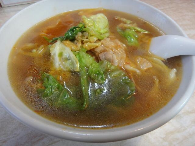 スープはオーソドックスなガラベースのスープにピリ辛の辛味噌?を加えたもの。出しゃばらず、麺や具の活躍を見守る存在だった。