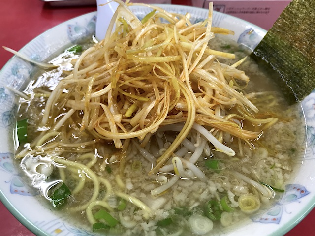 他のホープ軒より乳化具合低めのスープ。ニンニクが香り、豚骨醤油らしい味である。
